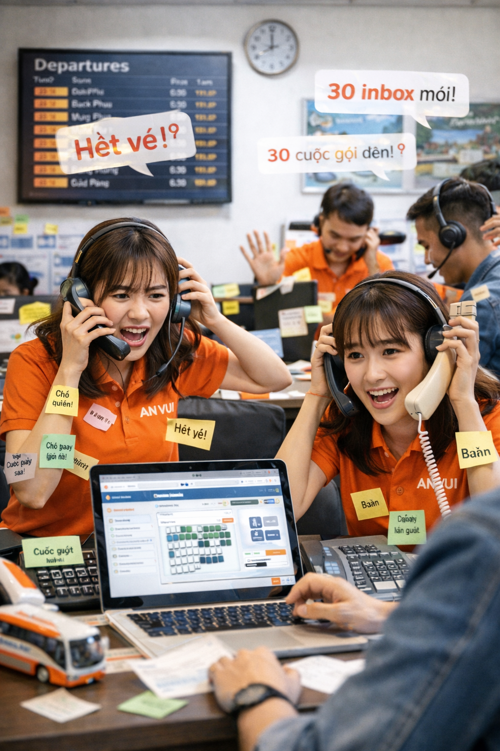 Trong nhiều năm qua, các doanh nghiệp vận tải, trung tâm chiếu phim và đơn vị dịch vụ tham quan du lịch đều đối mặt với một bài toán giống nhau: lượng khách tăng mạnh theo mùa vụ, tổng đài và kênh chat quá tải, chất lượng tư vấn không đồng đều và chi phí nhân sự ngày càng cao. Đặc biệt vào những giai đoạn cao điểm lễ tết, chỉ cần “trễ vài giây” trả lời cuộc gọi hay inbox, khách hàng có thể chuyển sang đối thủ ngay lập tức.