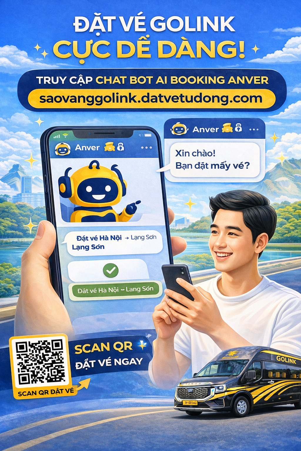 Trong xu hướng chuyển đổi số mạnh mẽ của ngành vận tải hành khách, GOLINK đã trở thành một trong những đơn vị tiên phong đưa trí tuệ nhân tạo (AI) vào hoạt động tư vấn và đặt vé tuyến Hà Nội – Lạng Sơn. Đây không chỉ là bước tiến về công nghệ mà còn là cam kết nâng cao trải nghiệm phục vụ hành khách một cách chuyên nghiệp, hiện đại và tiện lợi hơn bao giờ hết.